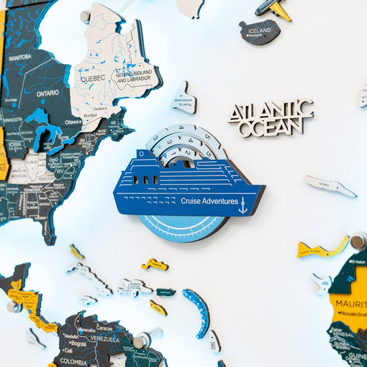Travel Tracker Cruise Liner 3D Colored Wooden World Map - Azure
