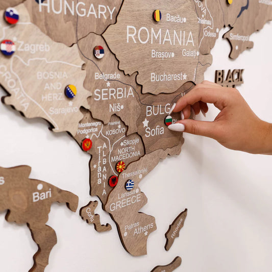 Handcrafted wooden regional maps – a modern statement piece in different tones. Features a multilayer design with subtle ash wood textures – sleek, calm, and minimalist. Ideal for contemporary interiors, office spaces, or as a stylish gift for travel lovers. Offered in multiple sizes and map details to suit your vision. Each map comes with clear instructions and is ideal for any occasion,