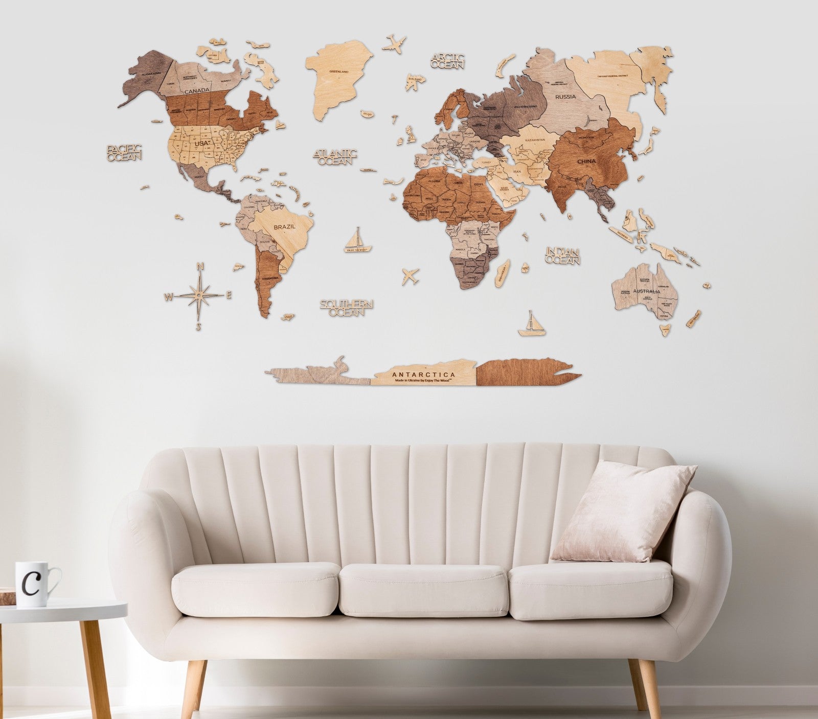 2D Wooden World Map Multicolor