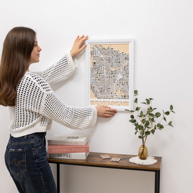 This piece is where the unparalleled energy of the Las Vegas city map meets the timeless calm of layered wood. Our advanced laser-cutting techniques meticulously layer premium wood, revealing the map of las vegas city in stunning, three-dimensional detail. You can trace the precise arteries of the entire city, including the intense concentration of the map of city center Las Vegas—a true feat of craftsmanship that brings the famous Las Vegas city street map to life.