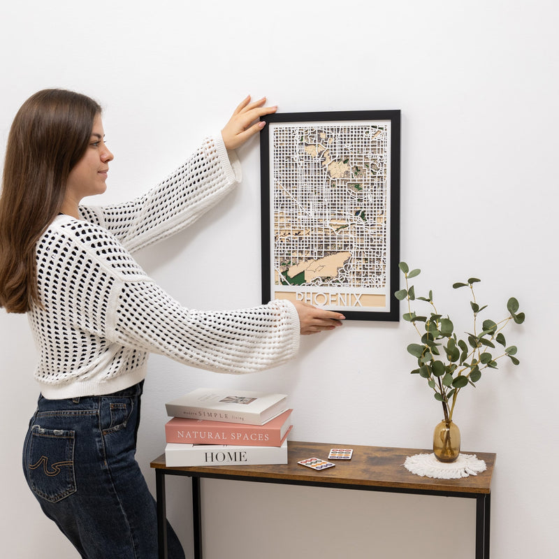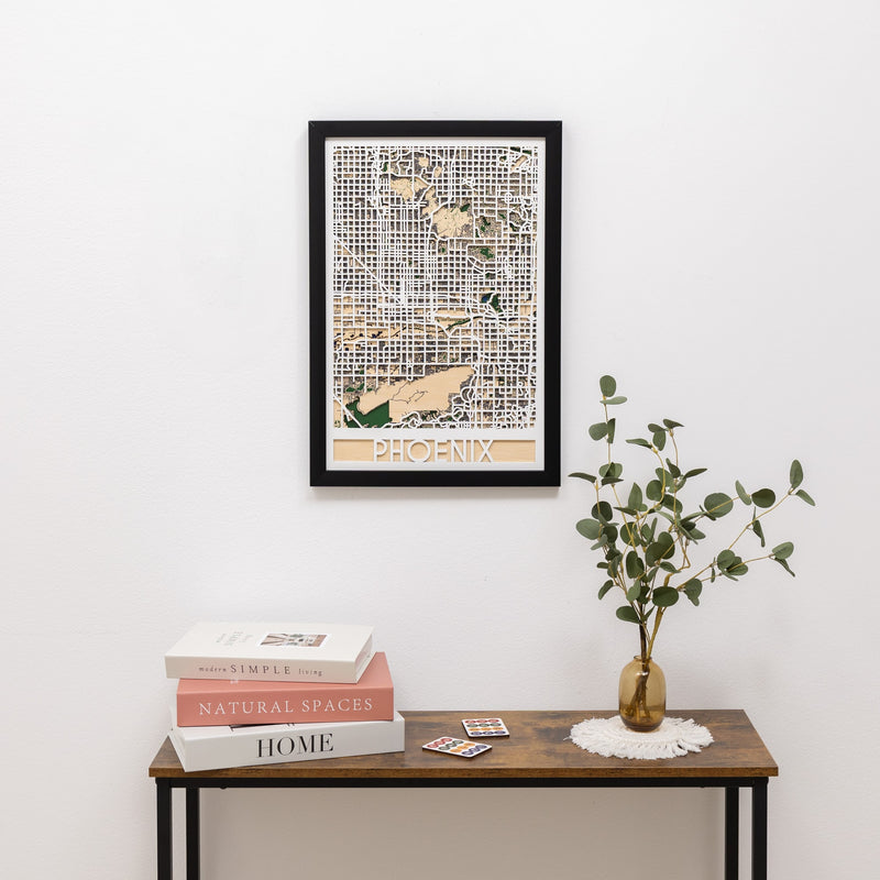 Our maps are built not just for display, but for personalizing your space. Each piece is crafted from premium layers of wood, ensuring genuine depth and striking dimension. This three-dimensional quality lets you trace the major avenues and appreciate the unique city map of Phoenix, Arizona.