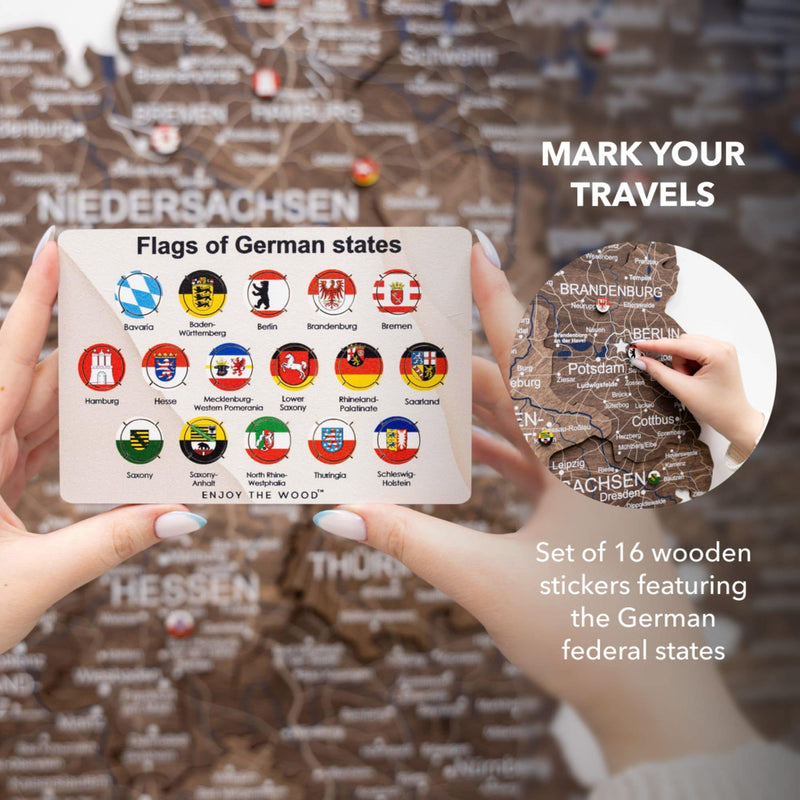 The 3D Germany Wooden Map Dark Walnut is a timeless piece of wall décor that beautifully displays Germany on map in rich, dark tones. Crafted from layered wood and finished in elegant dark walnut, this map combines natural texture with precise laser-cut detailing.