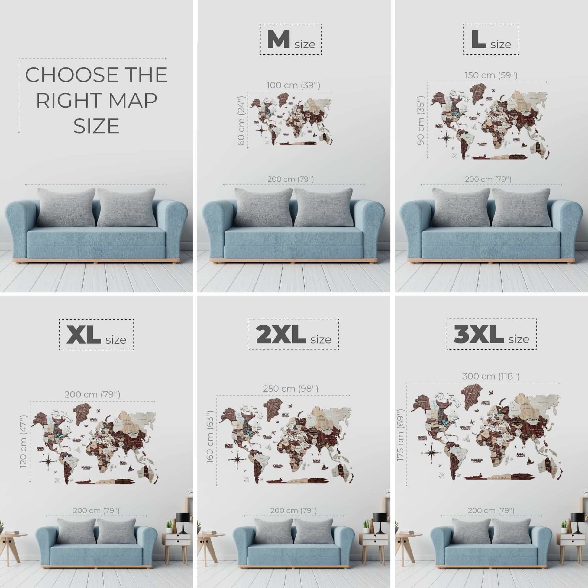 Crafted with certified sustainable birch plywood and fiber wood, our Map is not just decor but a travel planner and memory board. Installation is a breeze, taking just a couple of hours. It's the perfect ready-to-gift addition that lights up your space, available in various sizes.