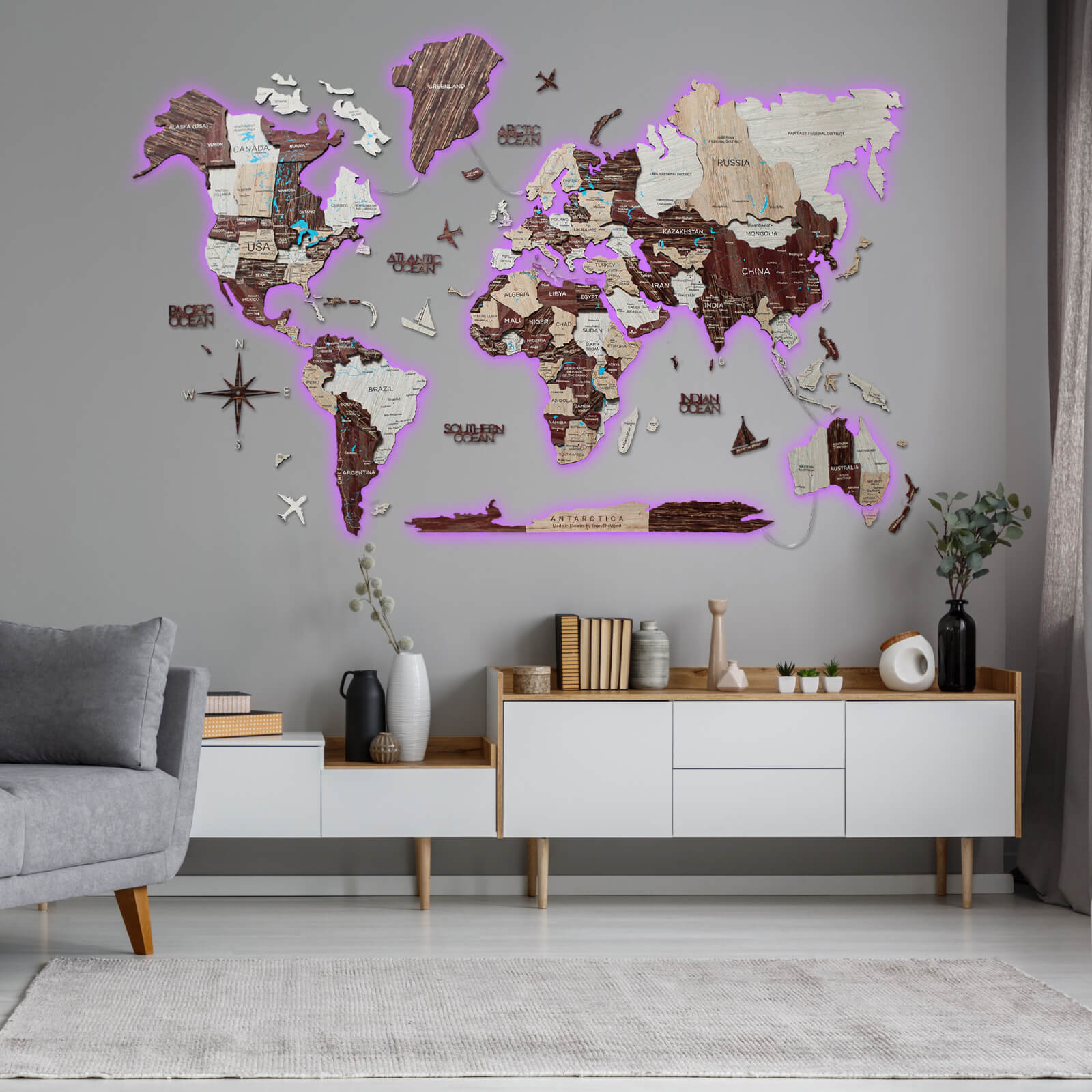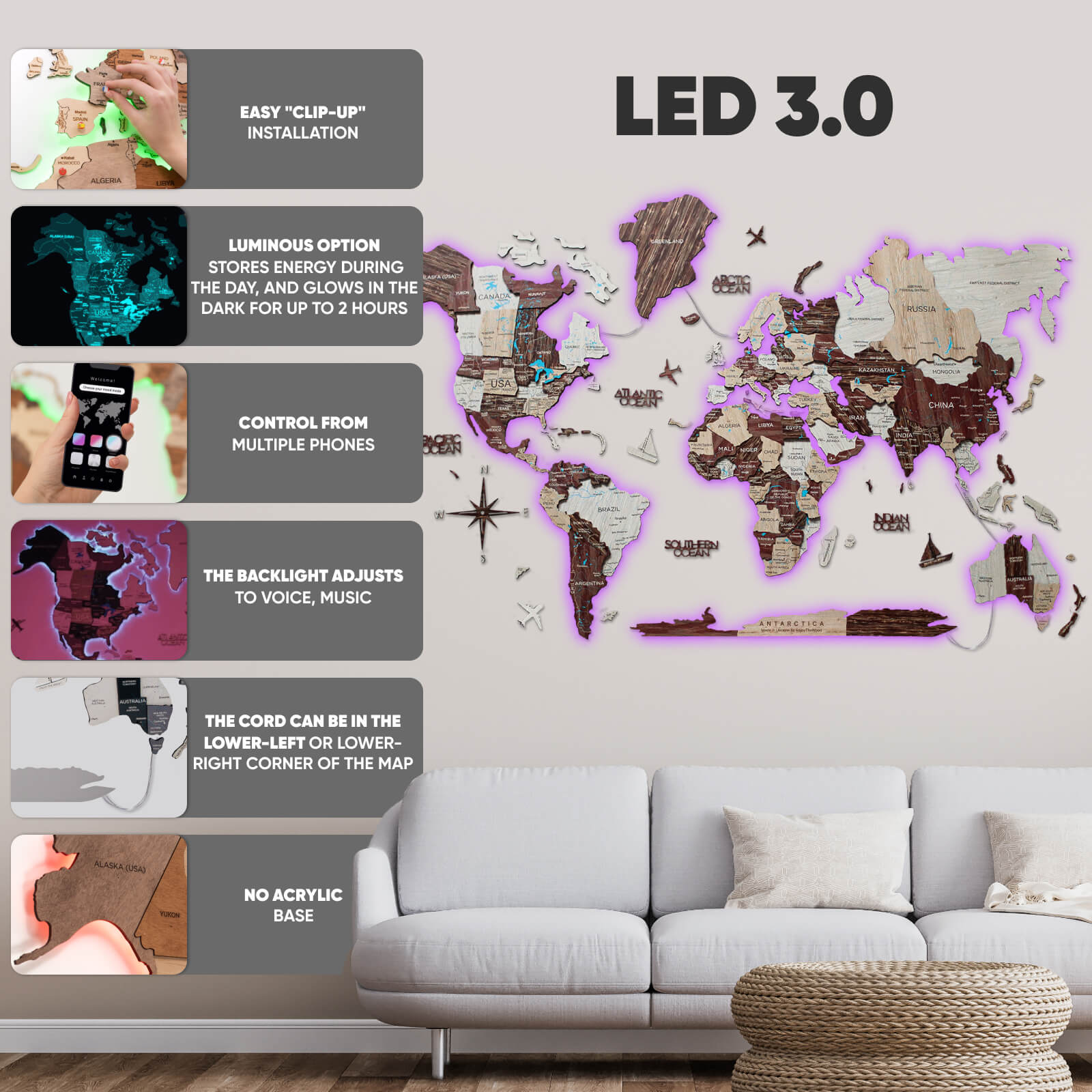 Wooden World Map LED 3.0 is not just a map, it is a breathtaking combination of aesthetics and innovation!