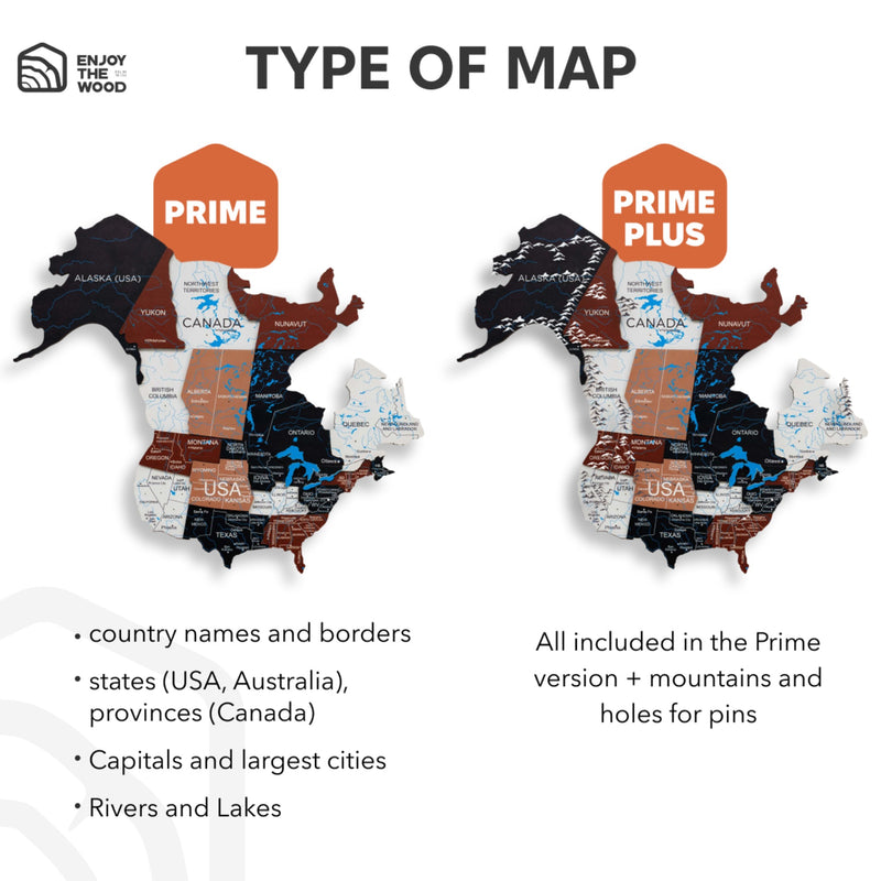 Rustic 3D LED map is crafted from birch plywood known for its durability and quality that together help the item stand the test of time. thickness: 6 - 17 mm, default language: English (can be customized)