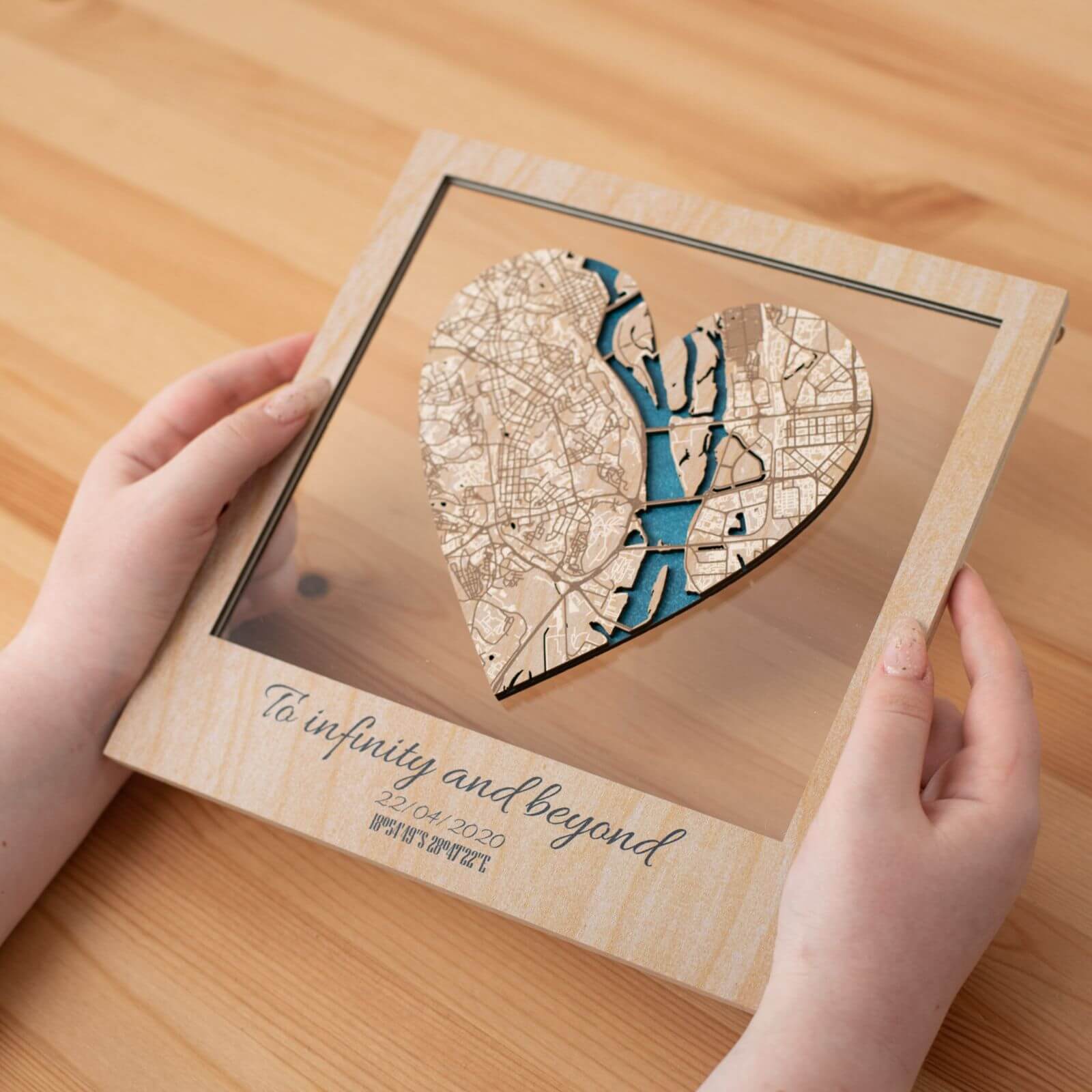 Add your personalization to the product! Is there a special place you left your heart at? Let us know the location name, and we’ll transfer it to a wooden canvas with the tiniest details to make it real-like.
