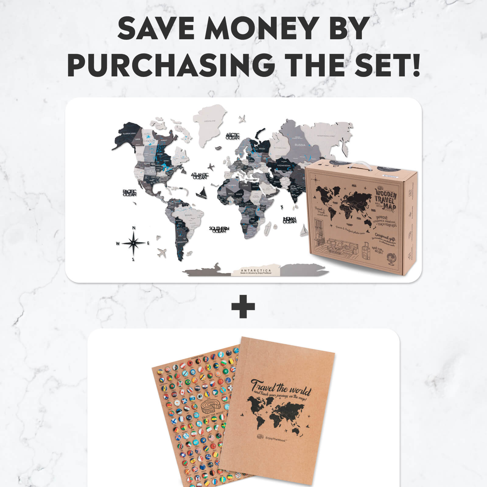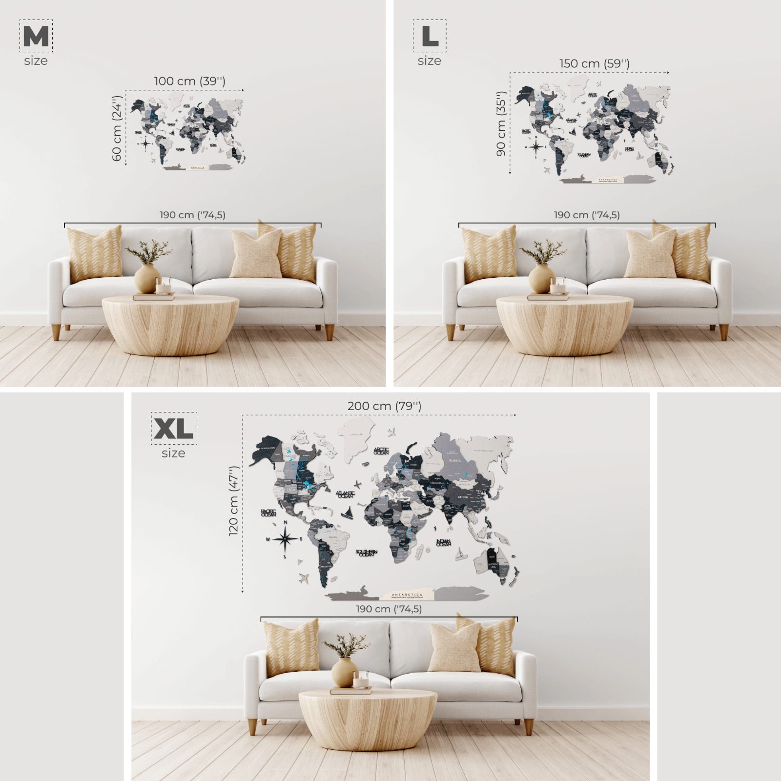 Every product in the assortment has its unique mission. While the map is about adding style and natural textures to the room, the photo frames will become elegant keepers of your memories. At the same time, a set of flag pins will help you plan and visualize your future journeys.