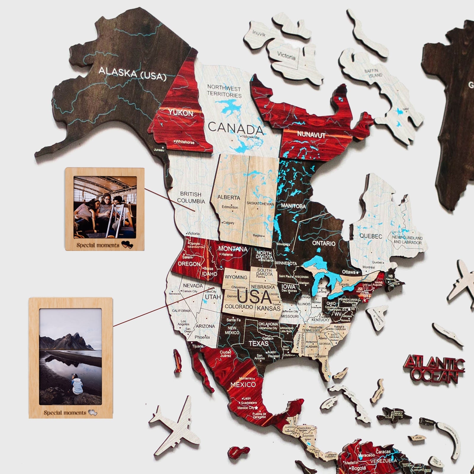 Bundle: 3D Colored Map with 9 Photo Frames and Flags Pins