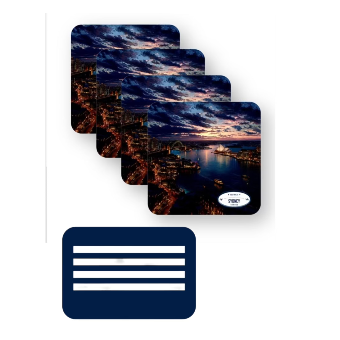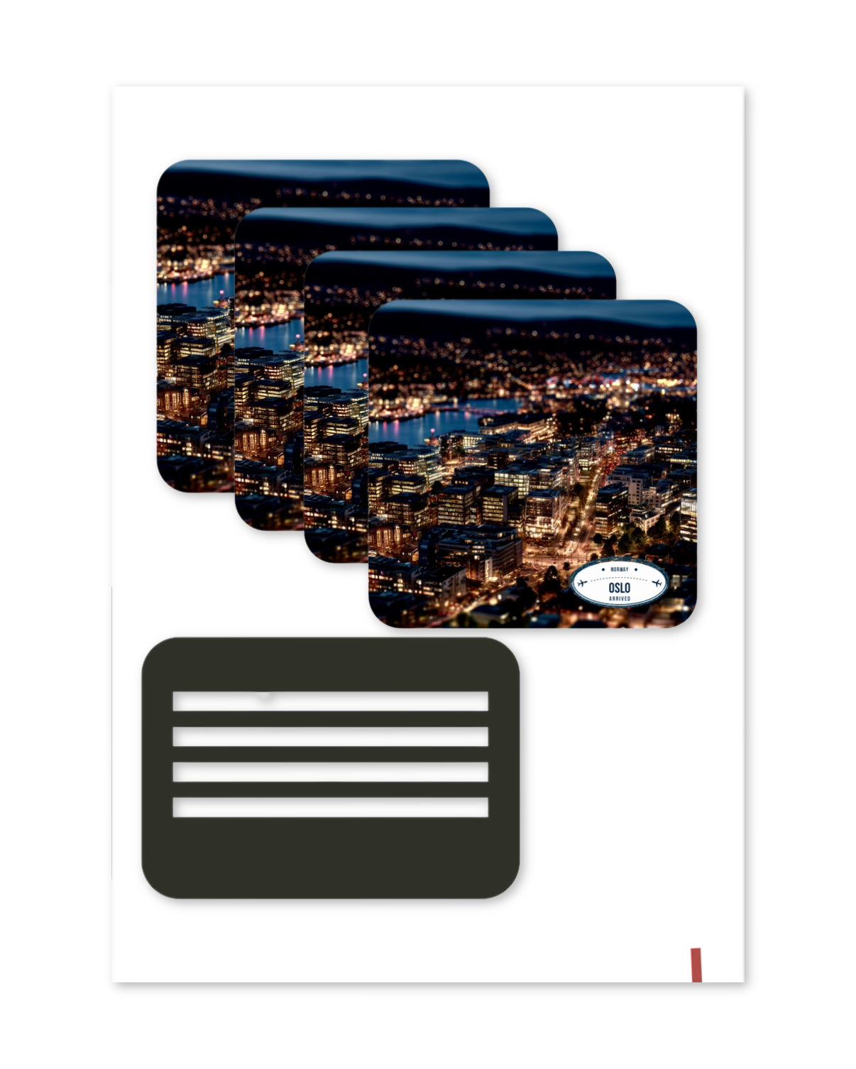 Our Set of four Wooden Coasters with Stand is a stylish and functional way to showcase the beauty of your city — or your brand. Each coaster features high-quality, full-color printed designs of iconic cityscapes, making them perfect for: