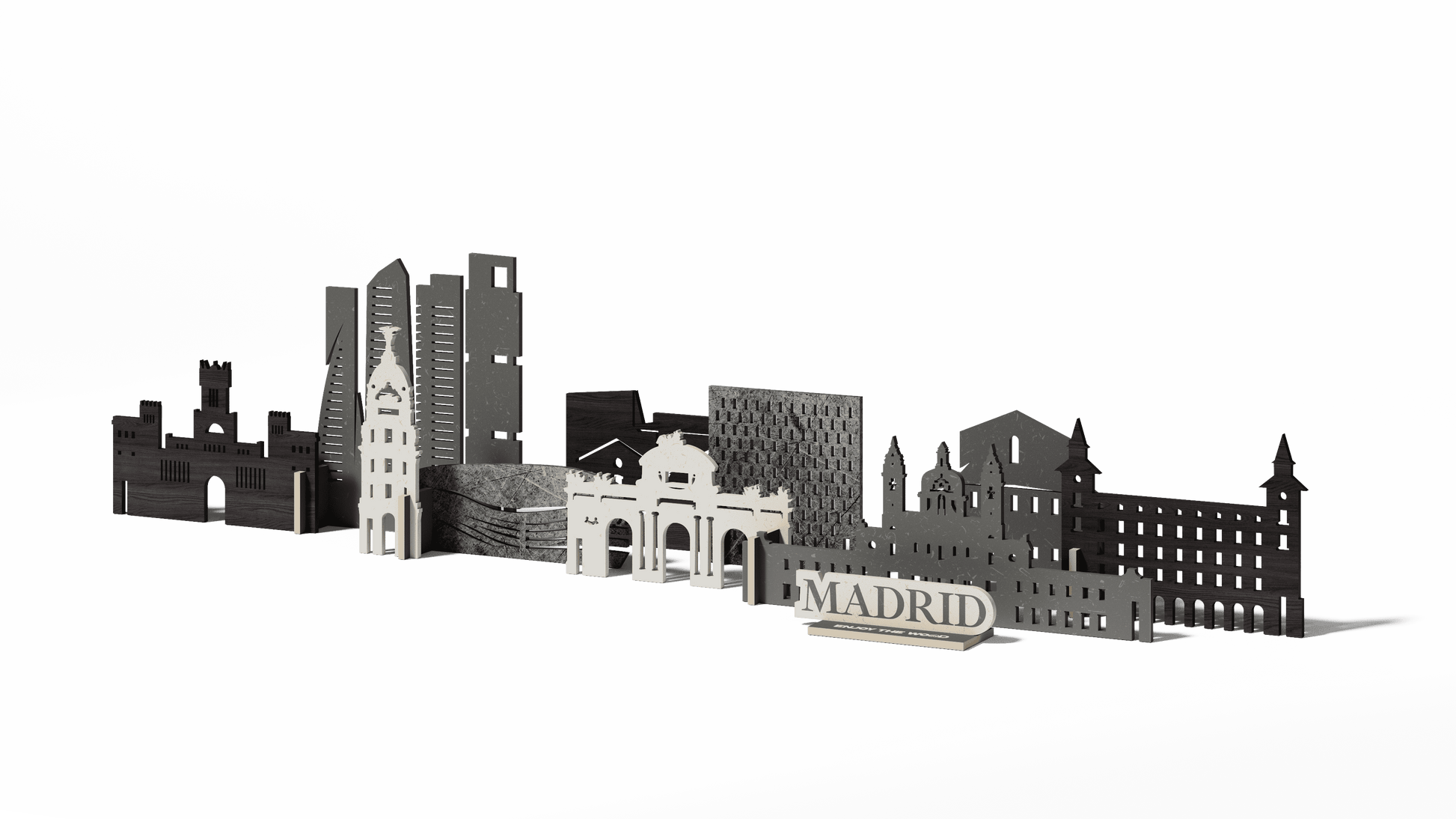 Memory City: Madrid Edition is a lively cityscape decor set that captures the cultural richness and historic charm of Spain’s capital. This set features detailed silhouettes of Madrid’s most iconic landmarks, including the majestic Royal Palace of Madrid, the stunning Almudena Cathedral, and the world-renowned Prado Museum. It also showcases the grand Palacio de Cibeles, the elegant Metropolis Building, and the architectural beauty of Gran Via 32. The collection includes the modernist CaixaForum Madrid, the monumental Edificio España, and the striking Torres Blancas. Also featured are the historical Puerta de Alcalá, the legendary Santiago Bernabéu Stadium, and the cultural magnificence of the Teatro Real. Completing the set are the historic Plaza Mayor, the iconic Telefónica Building, and the impressive Four Towers (Cuatro Torres Business Area), each representing Madrid’s rich blend of royal heritage, artistic tradition, and modern innovation.