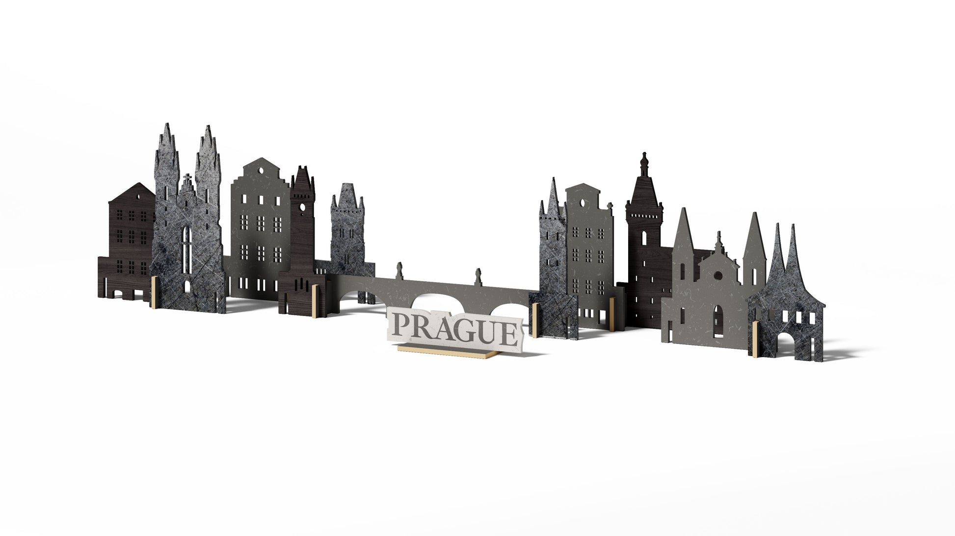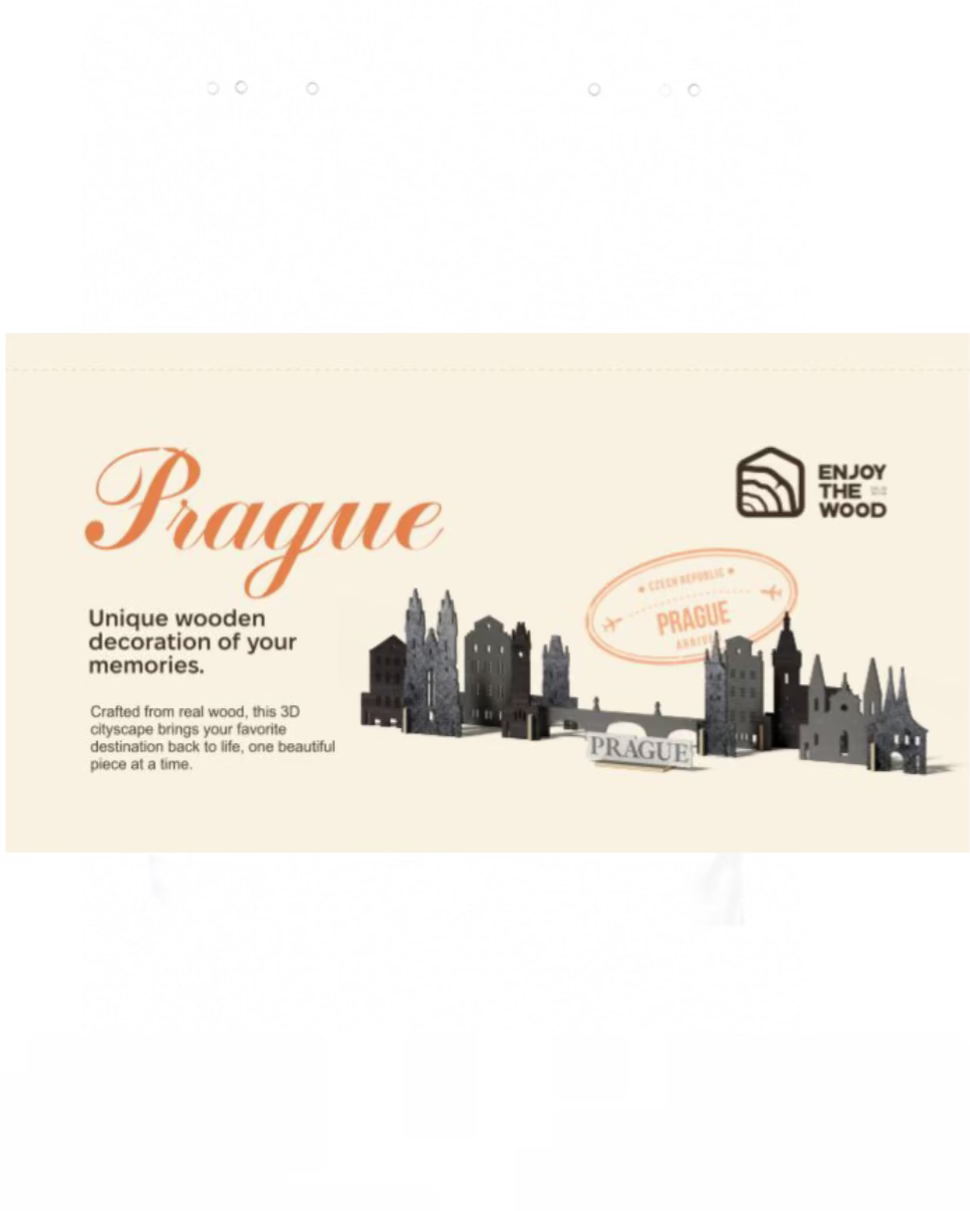 Memory City: Prague Edition is a beautifully crafted cityscape decor set that captures the enchanting spirit of Prague. This set features detailed silhouettes of the city’s most iconic landmarks, including Prague Castle, Charles Bridge, St. Vitus Cathedral, the Astronomical Clock, and the Dancing House. Each piece is designed to reflect the unique charm and architectural heritage of the Czech capital.