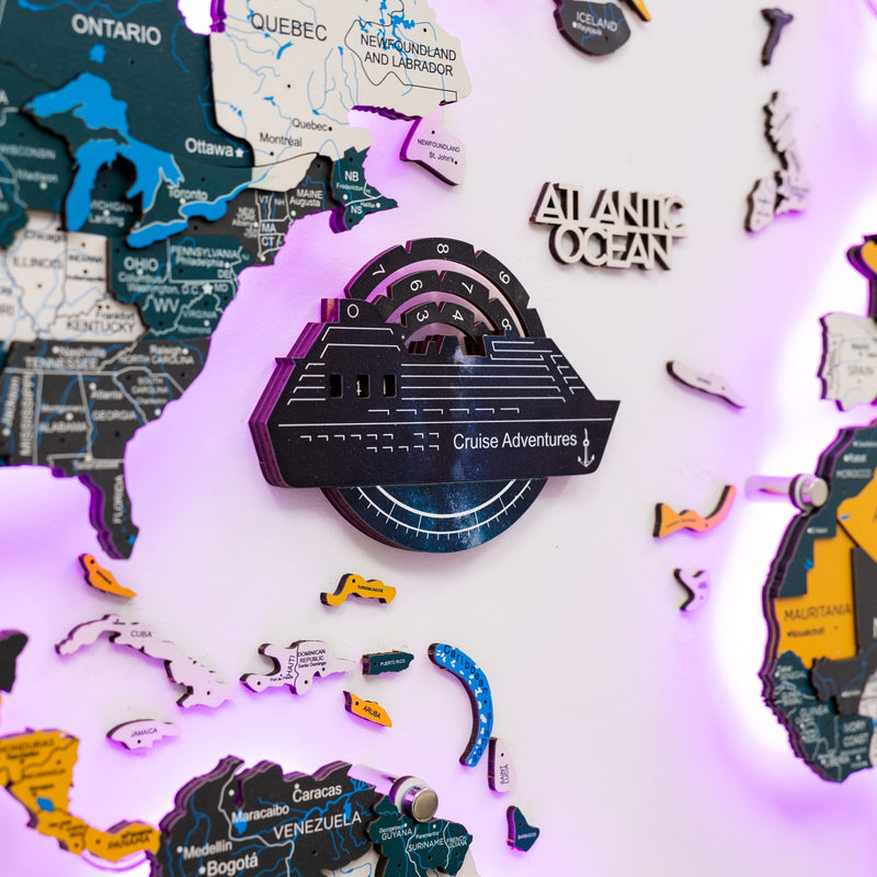 Travel Tracker Cruise Liner 3D Colored Wooden World Map - Space