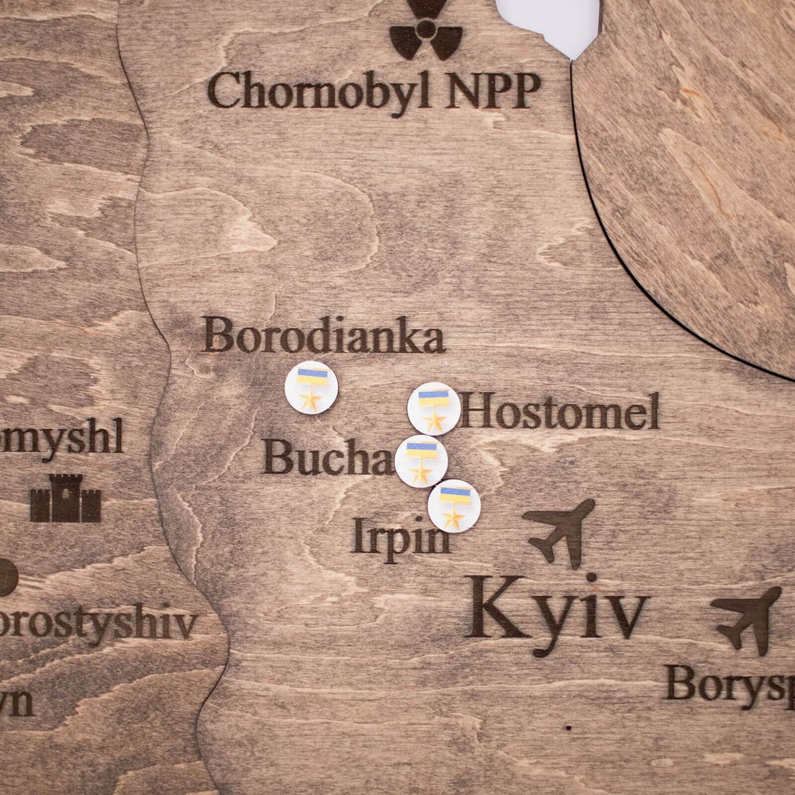 - Set of 15 pins for each hero-city that bravely withstood or is keeping withstanding the russian invasion. 10 pins for the cities you consider heroes and which were not awarded yet.