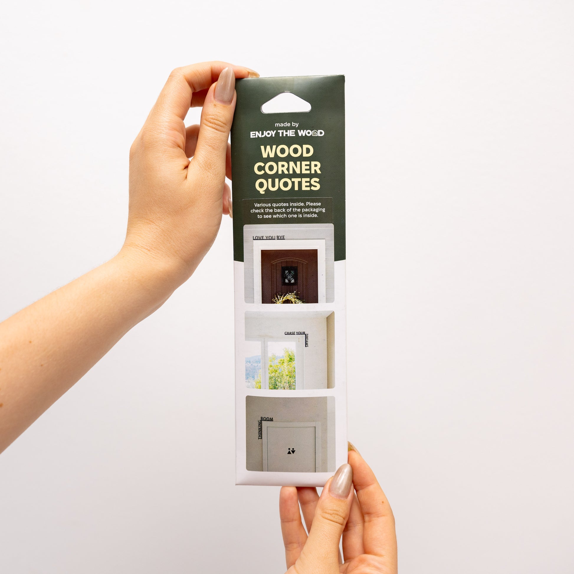 A heartfelt touch with handcrafted wooden corner quote featuring the phrase "Love You. Bye." Designed to nest perfectly any door corner, this lightweight decor piece comes with a strong adhesive backing for simple, damage-free installation.