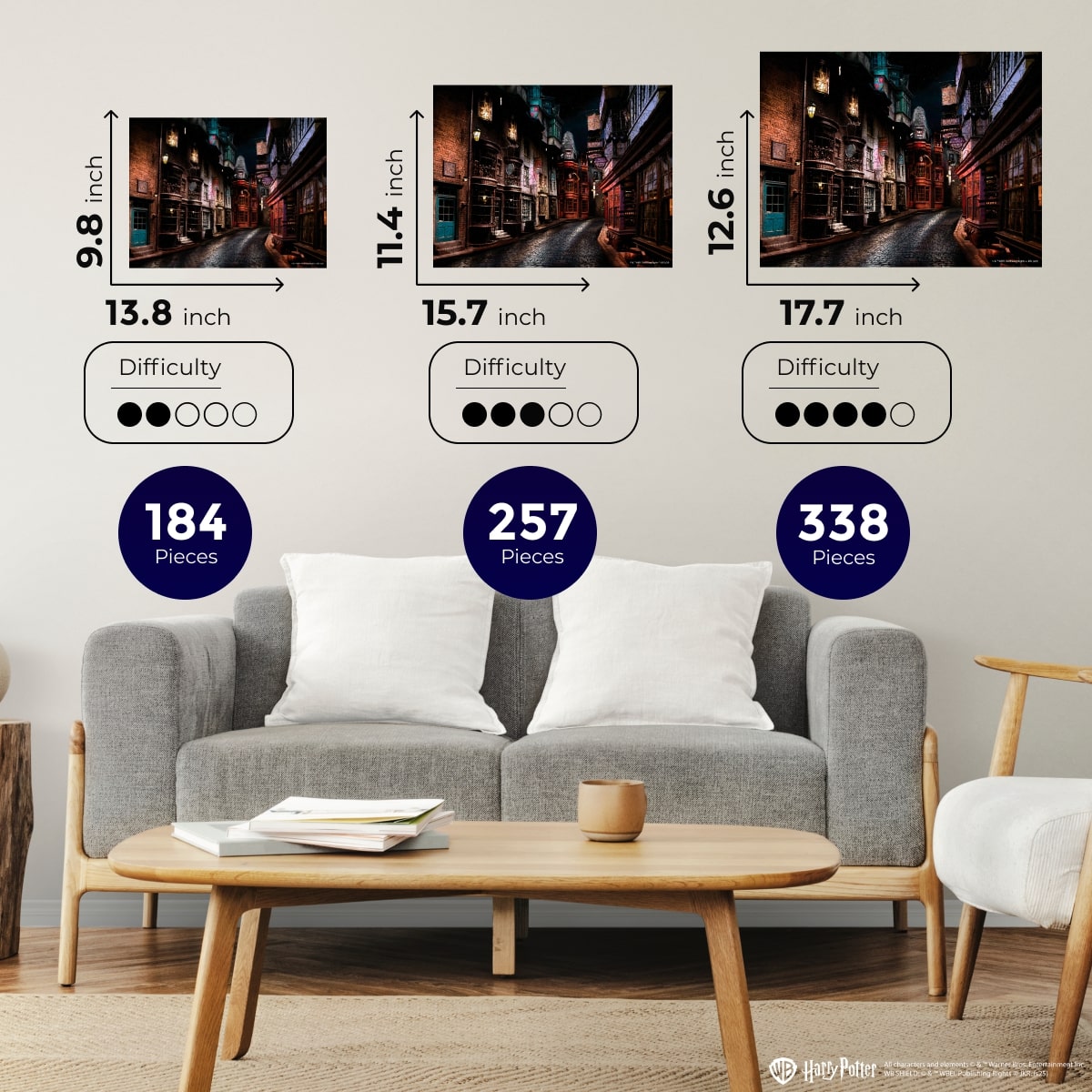 Made from high-quality wood, this Diagon Alley™ puzzle offers a satisfying, immersive experience for fans of all ages. The rich colors and intricate details of the street come to life as you piece together this vibrant, magical alleyway.