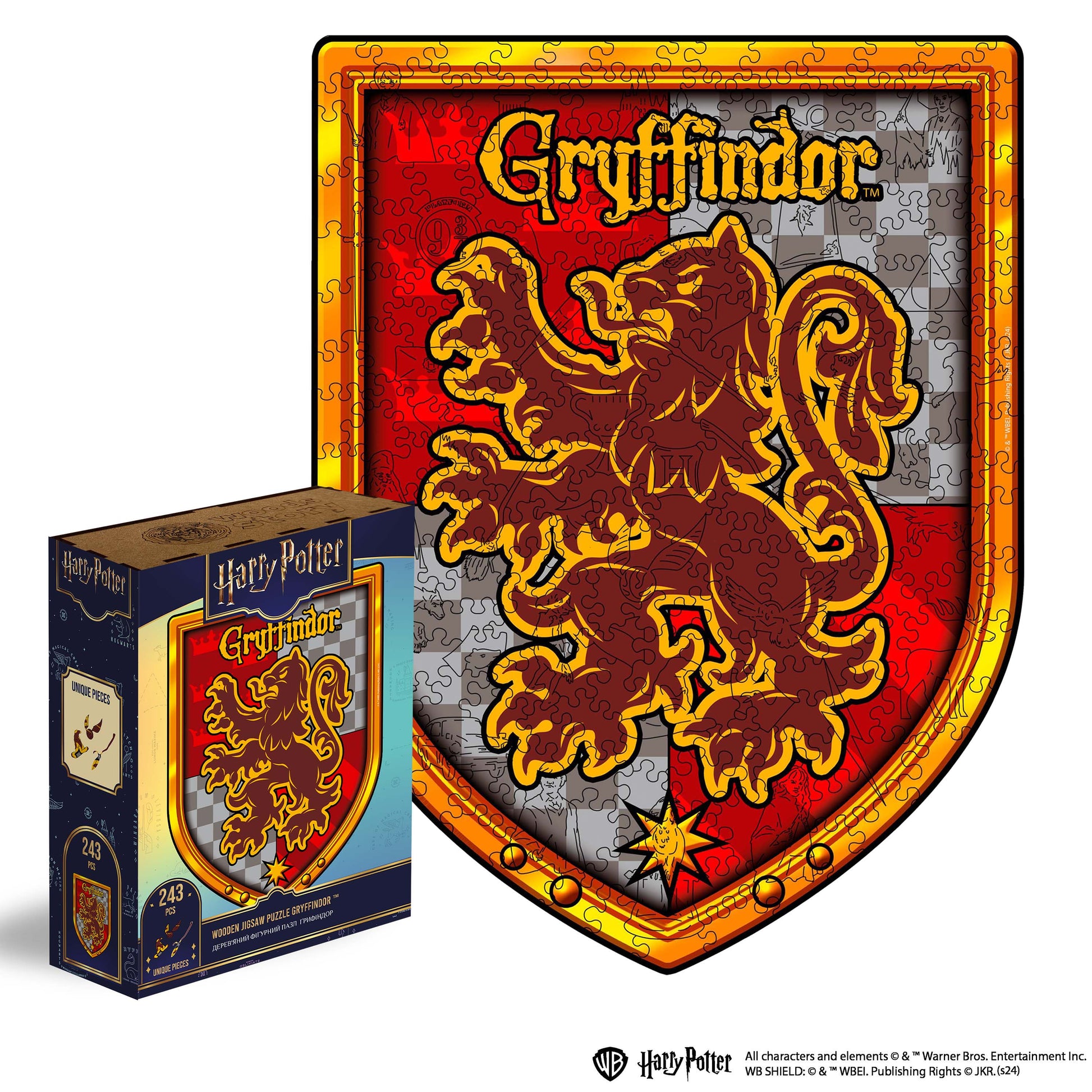 This puzzle is made of wood, which gives each piece a special strength and texture, and is a real pleasure to put together. The Gryffindor Coat of Arms puzzle is an opportunity to once again immerse yourself in the atmosphere of incredible adventures that awaited the heroes within the walls of Hogwarts, and relive your favorite moments from the books and movies about Harry Potter™ .