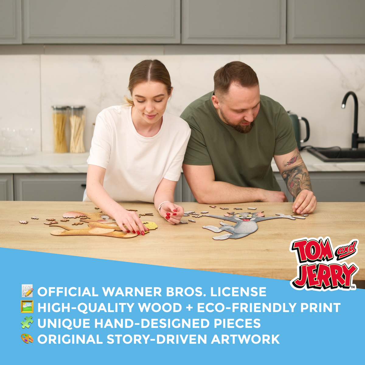 Step into the whimsical world of classic animation with the Tom & Jerry™ Tom XL Wooden Jigsaw Puzzle by Woods Story. This intricately designed puzzle captures the mischievous charm of Tom, the ever-persistent cat, bringing to life the timeless chase in a fun and engaging format.