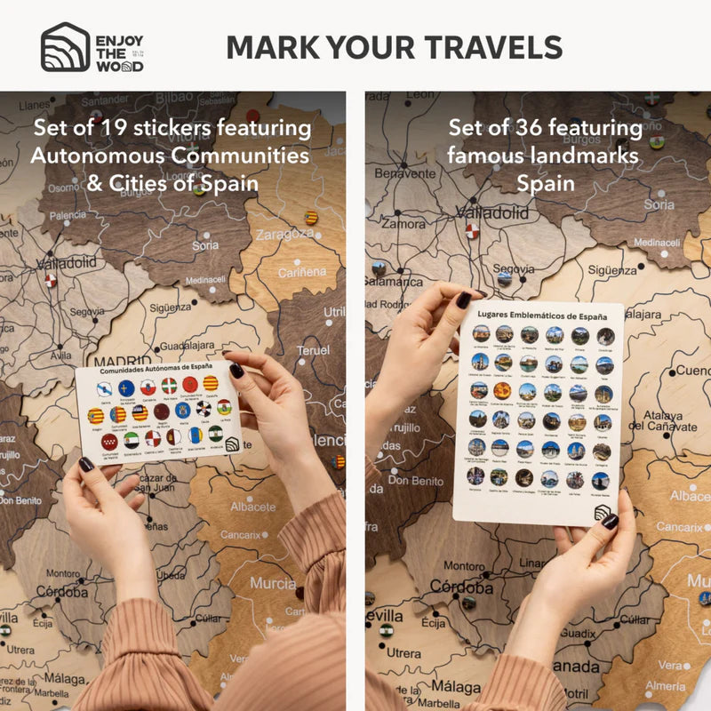 Wooden Spain Map — a stunning piece of wooden wall decor that captures the beauty and spirit of Spain. Crafted with laser-cut precision, it features detailed city outlines and a larger scale for perfect accuracy. Mark your favorite cities and memories across Spain, celebrate your past travels, and plan your next adventures with this elegant and meaningful travel map by Enjoy The Wood.