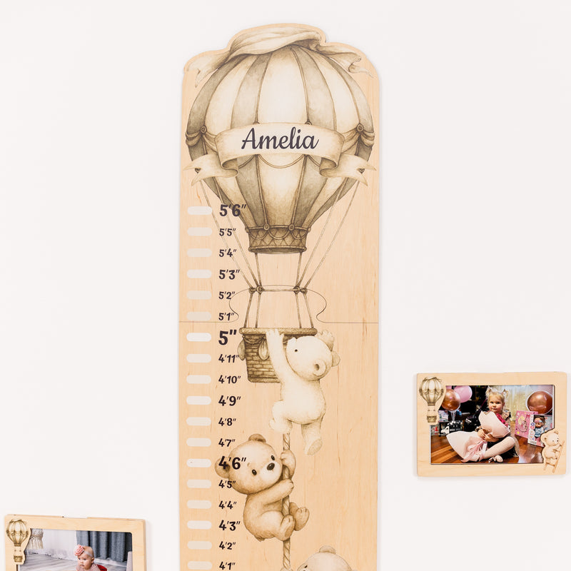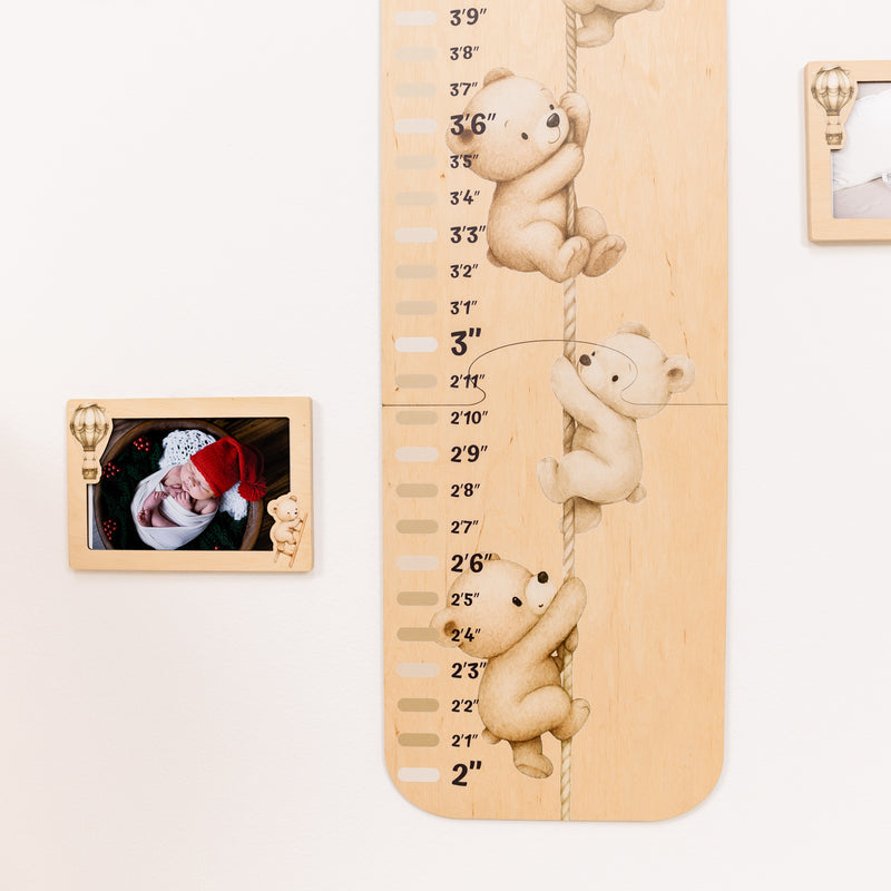 Ця діаграма росту малюка виготовлена з міцної високоякісної деревини, що гарантує, що вона стане цінною сімейною реліквією. Ніжні, нейтральні тони ілюстрації роблять її ідеальним вибором як для діаграми росту хлопчика, так і для дівчинки, яка бездоганно поєднується з будь-яким декором дитячої кімнати. Чарівні зображення ведмедиків створюють захопливу вертикальну історію.